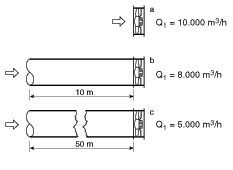 De 10 m de longitud y comprobamos que el caudal se ha reducido a Q = 8.000 m³/h. Alargamos a continuación el conducto hasta 50 m y medimos un caudal.