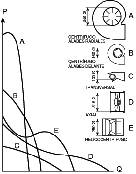 Es indispensable disponer de las curvas características de los ventiladores susceptibles de ser instalados, para cualquier cálculo e instalación que se haga.