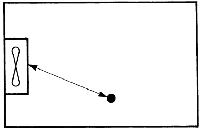 En el caso en que la fuente esté encerrada en una habitación, Fig. 6, el problema no es tan sencillo. En efecto, el nivel de presión sonora en un punto será la composición del directo y del de las sucesivas reflexiones que tienen lugar en las paredes, suelo y techo.