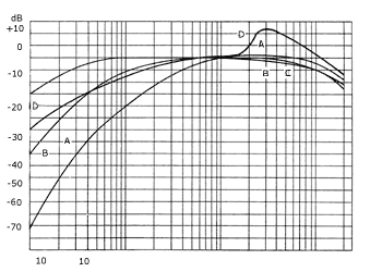 Fig. 2. Curvas de ponderación llamadas A-B-C y D
