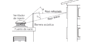 El vecino del edificio contiguo podría estar afectado por el ruido del ventilador. Una forma de atenuar este ruido es mediante una barrera acústica.
