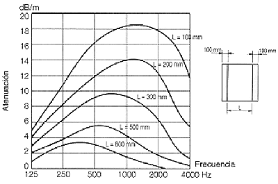 Ésta es tanto mayor cuanto mayor sea la relación entre el perímetro de material absorbente en contacto con el aire y la sección de paso. También crece con el poder absorbente del material.