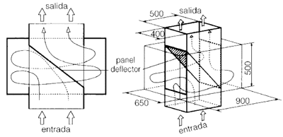 Otro es el plenum de la Fig. 5 en el que puede observarse que no existe una vía directa entre la entrada y la salida, sino que lo hace después de tres a cuatro reflexiones.
