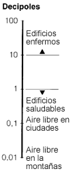 Según ello se ha establecido también que en función de los decipoles puede calificarse un ambiente. Los edificios a partir de los 10 decipoles se clasifican como afectados del Síndrome del Edificio Enfermo.