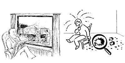 El risueño lector de la Fig. 2, satisfecho por haberse aislado del exterior con una ventana hermética, evitando la entrada de contaminantes, polvo y ruido, al poco tiempo empieza a sufrir alergias, irritaciones, escozores de ojos y jaquecas.