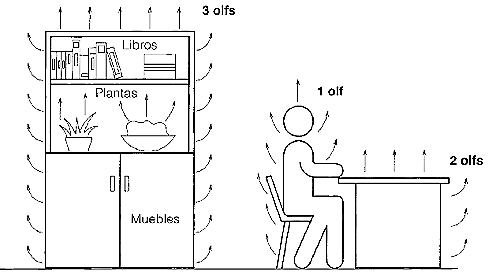 Se han llegado a establecer unidades para medir la calidad del aire interior. El profesor P. Ole Fanger, de la Universidad Técnica de Dinamarca, define el OLF como la polución que produce una persona, ocupada en trabajo sedentario y de higiene normal, una ducha cada día y medio. Un mueble, una mesa de despacho con sus papeles y utensilios equivale a 2 Olfs y una estantería media, con libros, plantas y objetos de adorno, contamina como 3 Olfs.