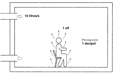 Y, utilizando los Olfs y los Decipoles como unidades de polución del aire, puede determinarse la ventilación necesaria del recinto: