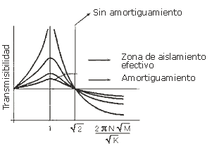 En resumen: Será bueno dotar de cierto amortiguamiento a los muelles para la puesta en marcha y parada de la máquina, pero no demasiado grande como para disminuir en exceso el aislamiento a la velocidad nominal.