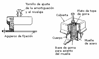 Un modelo muy amortiguado de aislador metálico es el de la Fig. 32, construído a base de un cable enrollado.