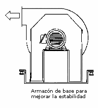 Para asegurar la estabilidad de la máquina es a veces necesario diseñar unas bases especiales para que los aisladores queden más separados y bajar la posición del c.d.m. La Fig. 35 es un ejemplo para un ventilador centrífugo con la salida de aire en la parte superior, bastante alejada de los puntos de anclaje.