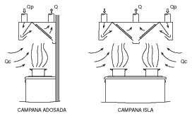 • El caudal de aire extraído a través de campanas debe ser superior al introducido según se indica en esta tabla, a fin de mantener el local en depresión.