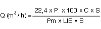 Como esta fórmula se refiere a condiciones normales aplicaremos la Ley de Charles y Gay Lusac para conocer el caudal necesario a 175 ºC a que trabaja la estufa: