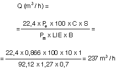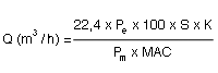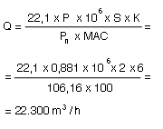 pero como la cabina de pintura está ocupada por seres humanos, deberemos calcular el caudal necesario para diluir el contaminante a valores de la Máxima Concentración Aceptable, el MAC, para lo que resulta: