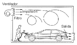 El pintado en cabinas y espacios cerrados con evaporación de solventes volátiles al ambiente interior, constituye un caso de atmósfera potencialmente explosiva con presencia humana cuya ventilación de dilución debe calcularse para que no sobrepase ni el LIE, Límite Inferior Explosivo, ni el MAC, Máxima Concentración Aceptable.